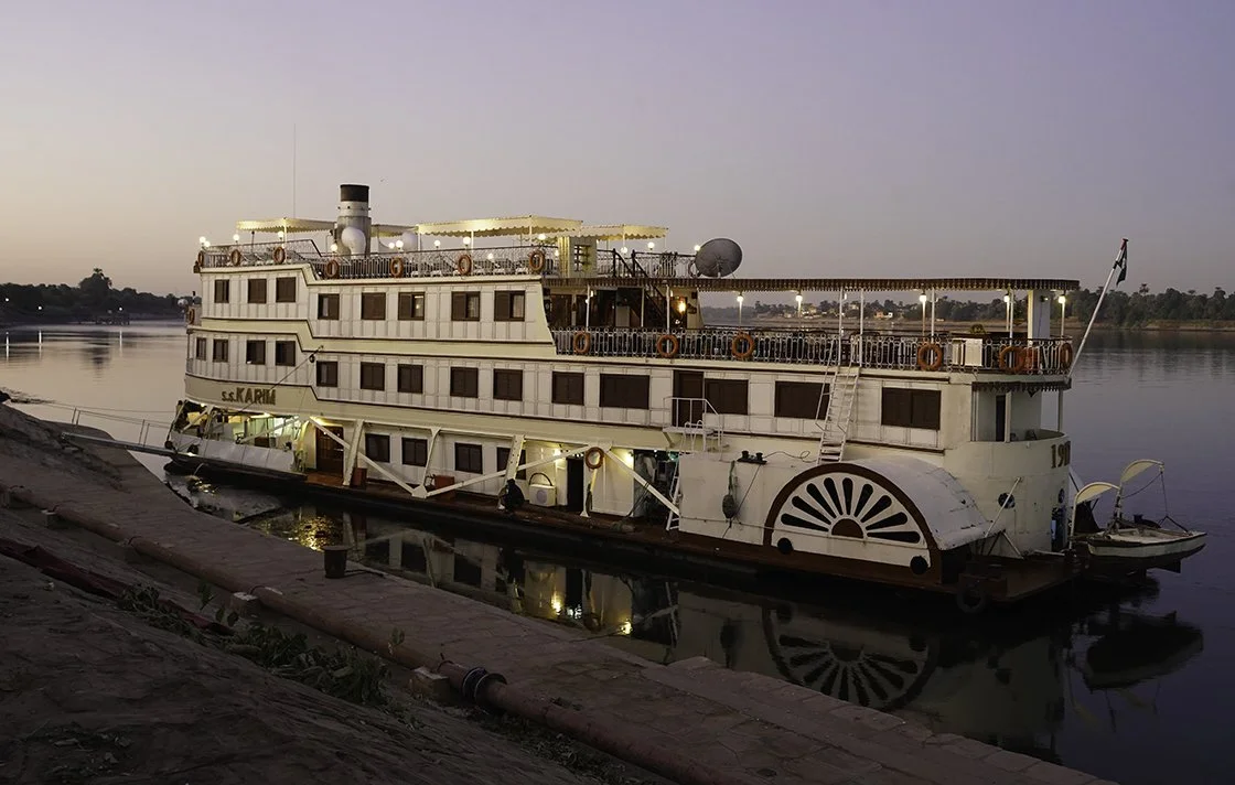 Built in 1917, the SS Karim is a steam paddlewheel vessel. Originally the Royal vessel, it was later used by Egypt’s presidents