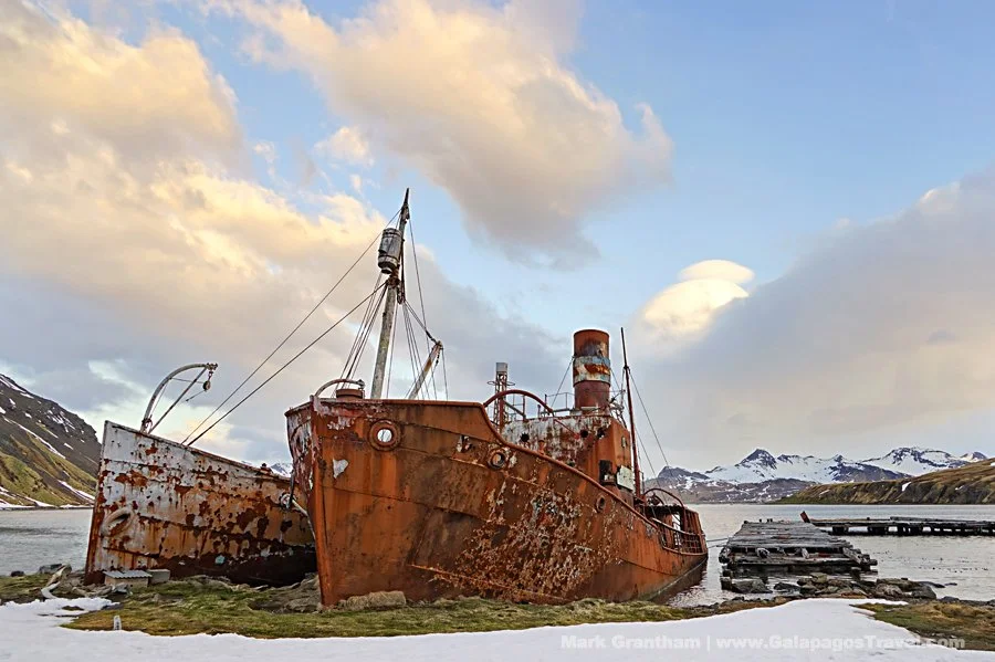 Grytviken whaling station stands today as a reminder of times past, with rusting building, equipment and ships.