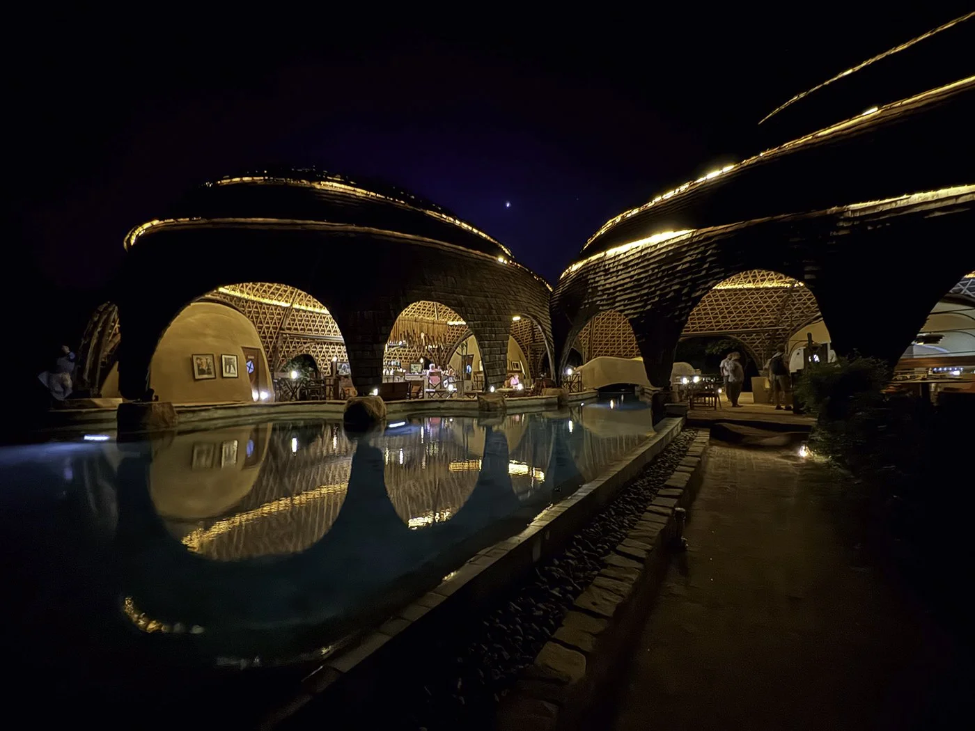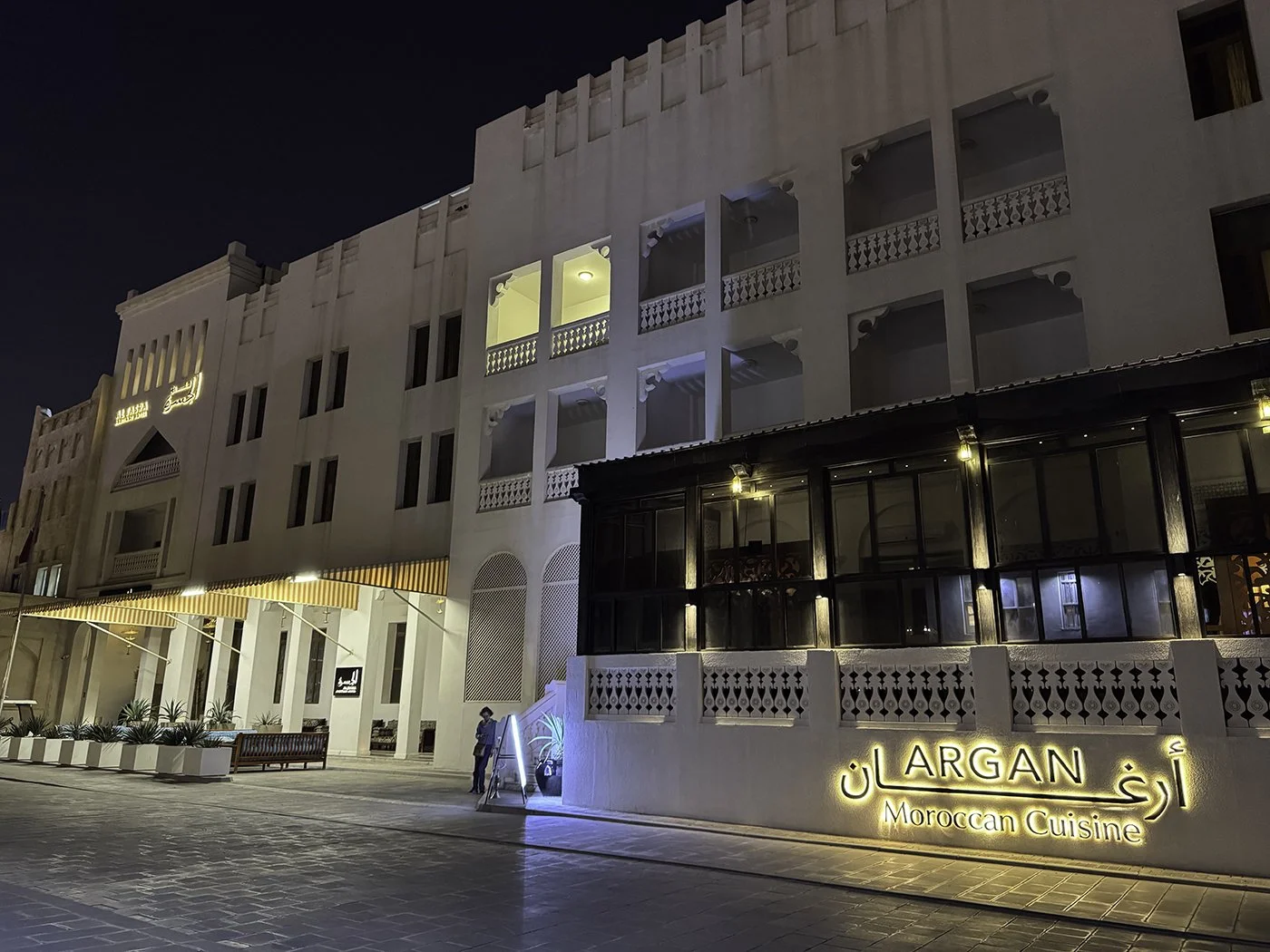 the Al Jasra Hotel (our room is the top floor with the lit terrace), and the Argan restaurant (on the Michelin star watch list)