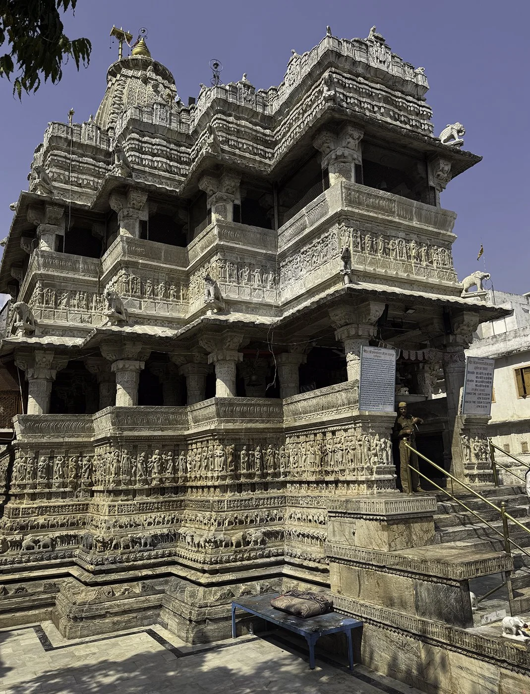 Udaipur and the Leela Palace was largely about rest and relaxation amid the opulence. We did have a pre-arranged full-day tour one day, booked through Viator, visiting most the the city’s key sites including the elaborate City Palace, gardens, a lovely lunch, and a wee bit of shopping. After a great day with our guide he suggested we independently check out a temple near our hotel the following day (he was already booked for that day so unable to take us). We received a similar recommendation from a couple of hotel guests too, which led to the following adventure, as described by Joel: