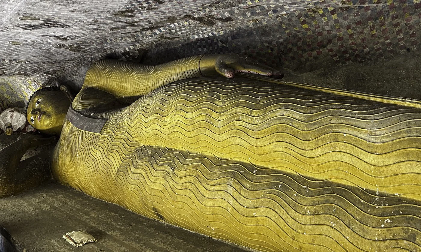 Dambulla Royal Cave complex is made up of 5 caves, and home to over 150 Buddhas. This largest reclining Buddha is over 15 meters in length!