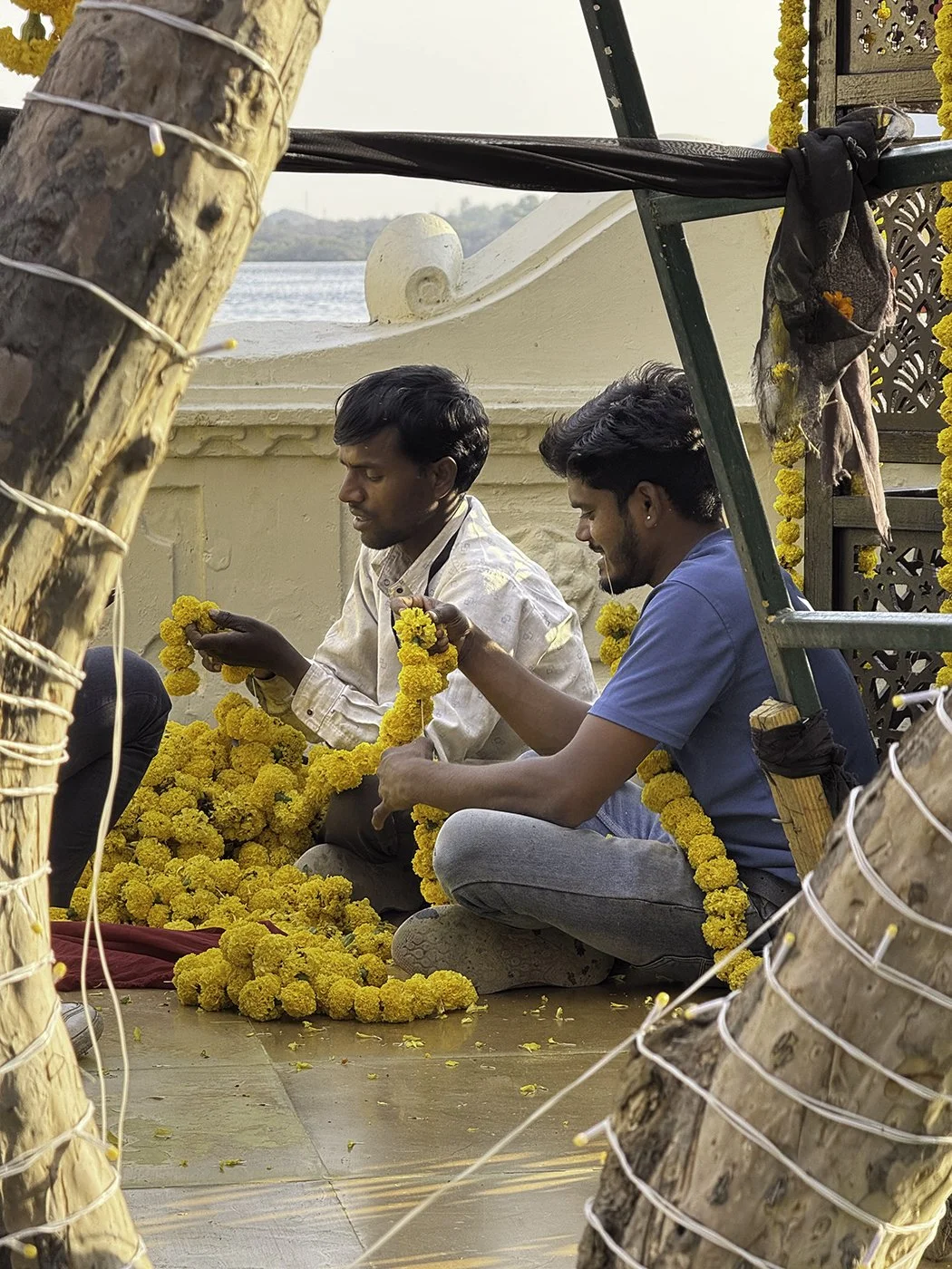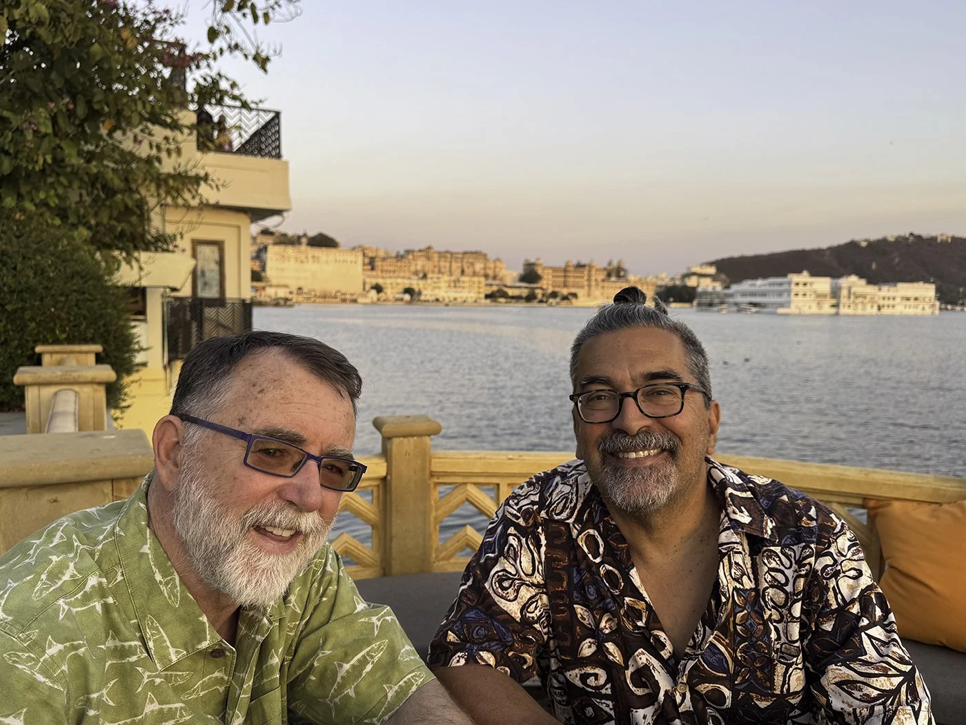 From Sri Lanka the 4 of us flew on to India. Our destination here was the city of Udaipur, in Rajasthan (northern India). Tony had been to Udaipur 30+ years ago and wanted to return and share it with Joel. Mike and I had been to other parts of Rajasthan ourselves, 20 years prior. The plan was for 3 amazing nights at the Leela Palace Hotel, located on the banks of Lake Pichola. Another truly over the top property… guests arrive by private boat and as you enter the hotel musicians are serenading you, while staff rains red rose petals down on guests from their perch in the rafters, and you are served tiny cups of ultra-rich hot chocolate while invited to sit while they do the check-in formalities for you. You also meet your room butler now who will be on hand for any requests throughout your stay! Our suite included a private terrace looking across the lake for more beautiful views (views also enjoyed by the pair of pigeons trying so hard to build a nest on our terrace floor!)