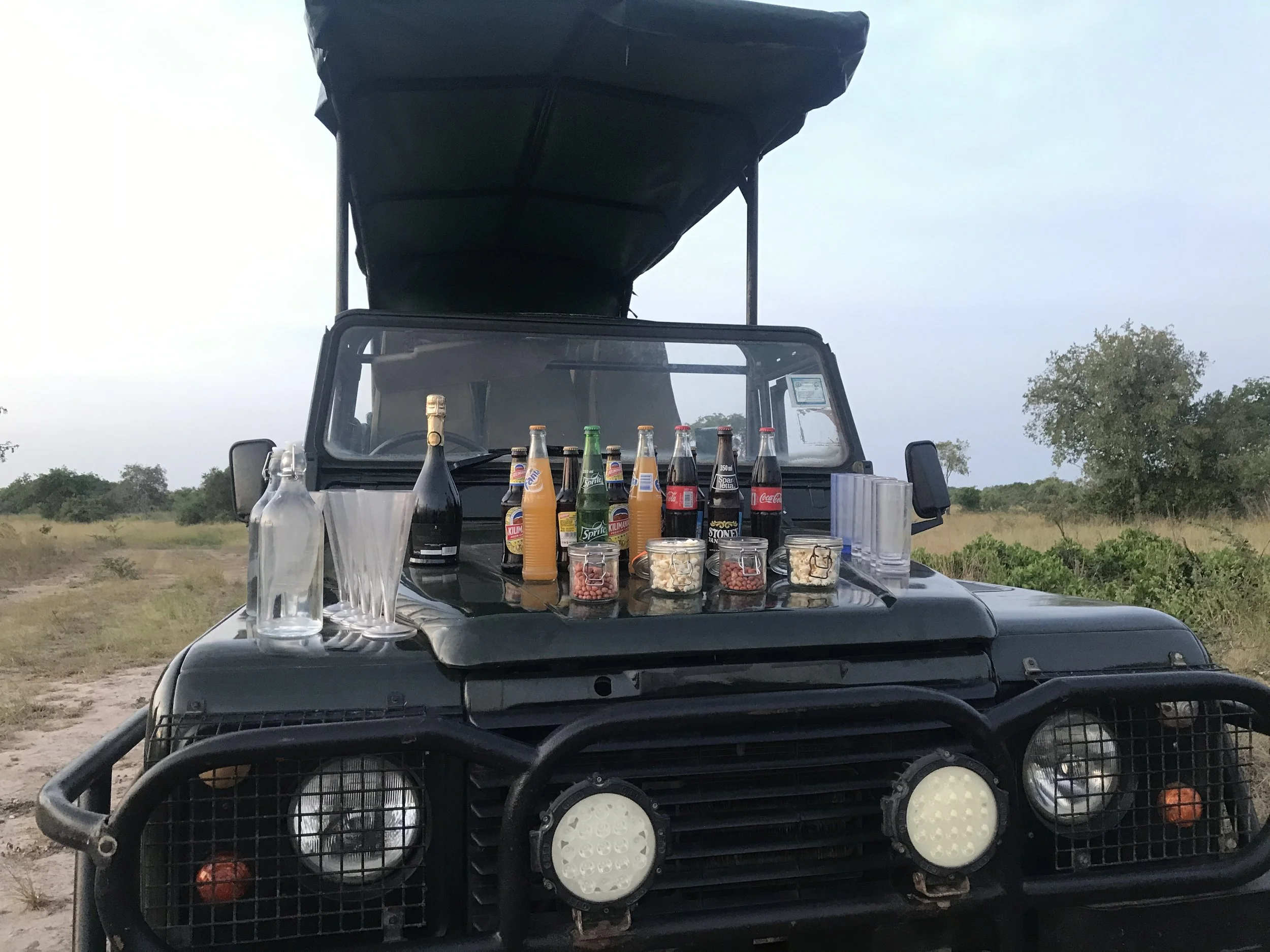 sundowners in the bush (this spread is for just the 3 of us!); Saadani Safari Lodge