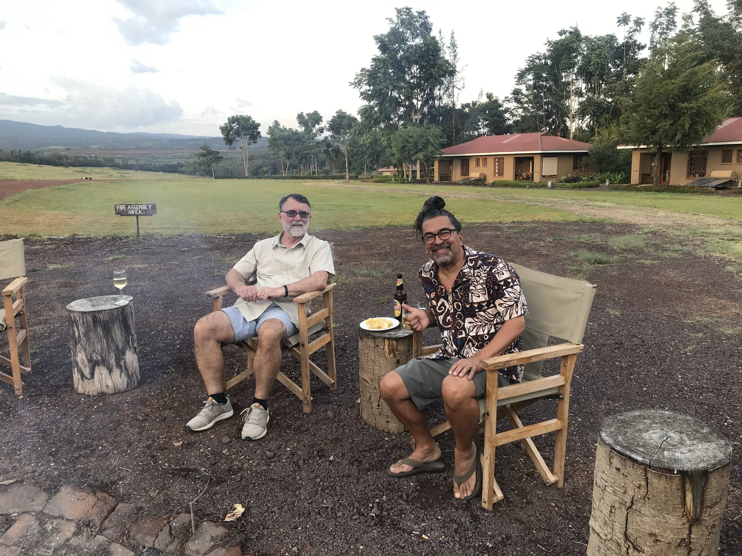 All too soon it was time to say goodbye to the wonderful staff at Babu’s and return westward. We lunched in Arusha before continuing on to the Karatu Highlands, arriving in the late afternoon. Our night would be at the plush Ngorongoro Farmhouse Valley Lodge, set amid a 500 acre coffee plantation on the outer flanks of the crater. While the pool was tempting we instead opted for the free sundowner drinks and nibbles by the bonfire as we watched the sky gradually color with the setting sun. Once again we were nearly the only guests. Dinner was on the terrace, watching a lightning storm in the distance over the crater rim. Tomorrow will be an early morning, aiming to enter the Ngorongoro Conservation Area bright and early.