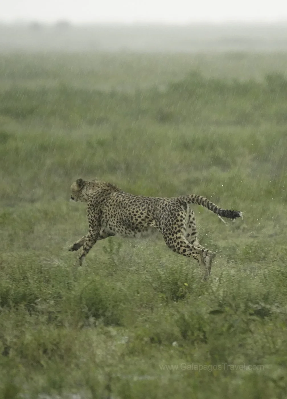 I always love when some unexpected moment even catches the guides by surprise. A first for Jerry this trip was a leopard sitting on the very tippy top of an umbrella acacia tree, in a vulture’s nest. Looking at the tree from below it was hard to fathom how the small branches were holding the weight of the leopard! Another first was a lone cheetah we were watching when a sudden deluge struck. Typically wildlife has no option of finding shelter from rain so they just ignore it, but this soaked cheetah would move from one spindly bush to the next, seeing if by chance it provided any shelter.